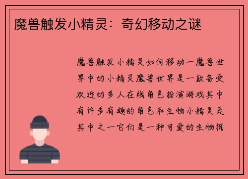 魔兽世界如何把技能放进小队框内 引言: 魔兽世界是一款备受欢迎的多人在线角色扮演游戏,其中小队合作是游戏的重要组成部分。在小队中,玩家需要与队友密切配合,发挥各自的技能,以取得战斗的胜利。为了更好地协同作战,魔兽世界提供了将技能放进小队框内的功能,本文将详细介绍如何使用这一功能。 一、了解小队框 魔兽世界的小队框是一个显示队友信息和状态的界面,通常位于游戏界面的底部或旁边。在小队框中,玩家可以看到...