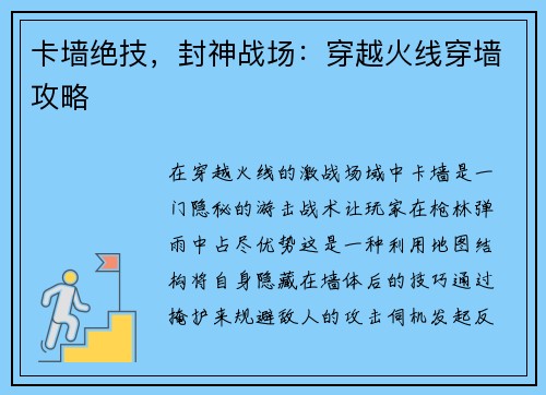 魔兽世界如何把技能放进小队框内 引言: 魔兽世界是一款备受欢迎的多人在线角色扮演游戏,其中小队合作是游戏的重要组成部分。在小队中,玩家需要与队友密切配合,发挥各自的技能,以取得战斗的胜利。为了更好地协同作战,魔兽世界提供了将技能放进小队框内的功能,本文将详细介绍如何使用这一功能。 一、了解小队框 魔兽世界的小队框是一个显示队友信息和状态的界面,通常位于游戏界面的底部或旁边。在小队框中,玩家可以看到...